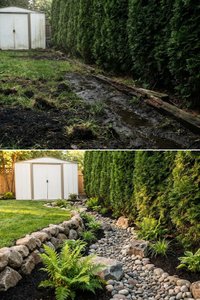 Got a muddy swale eating your lawn? Learn why straight timber edging rots and how to fix drainage with a natural rock garden and native ferns.
